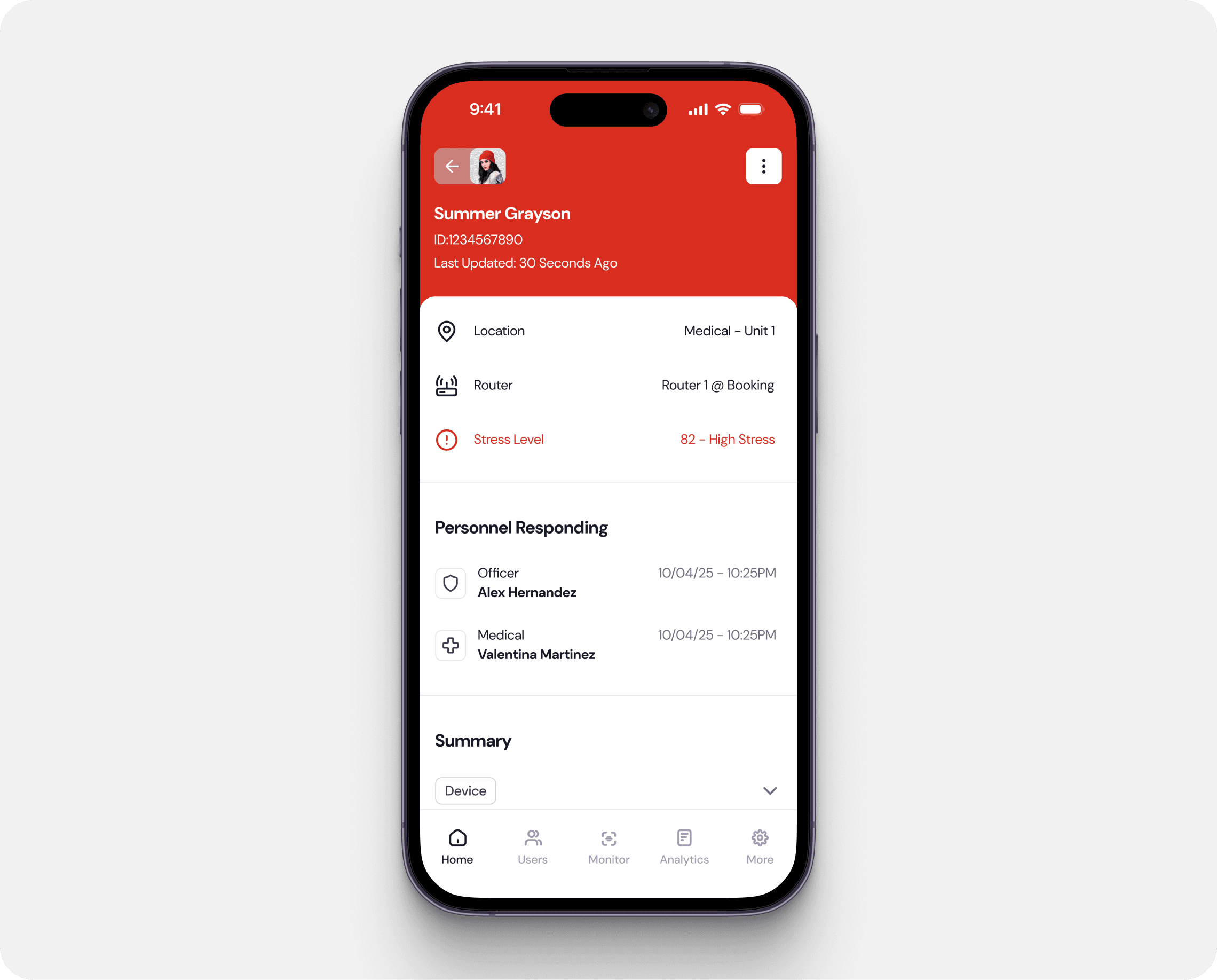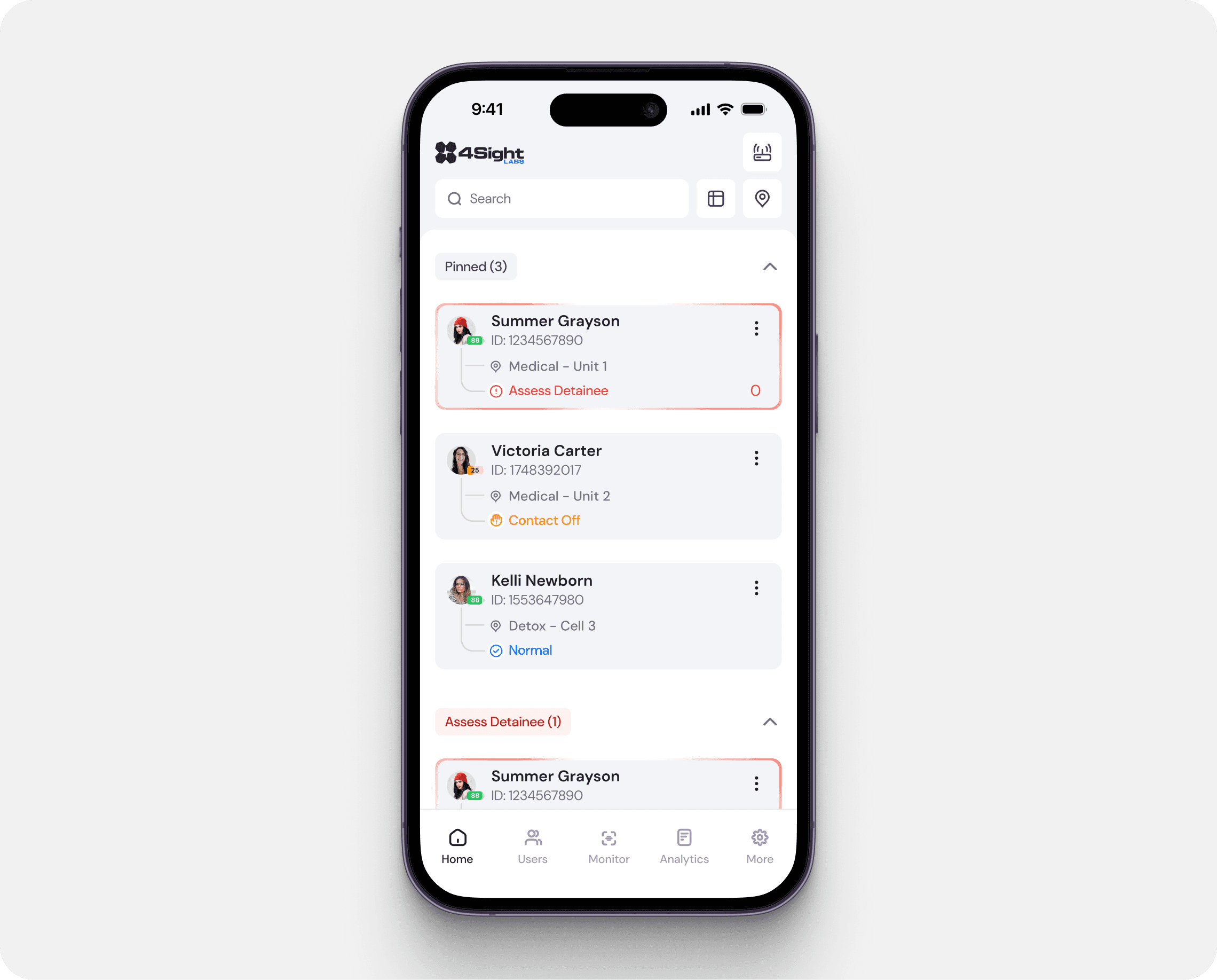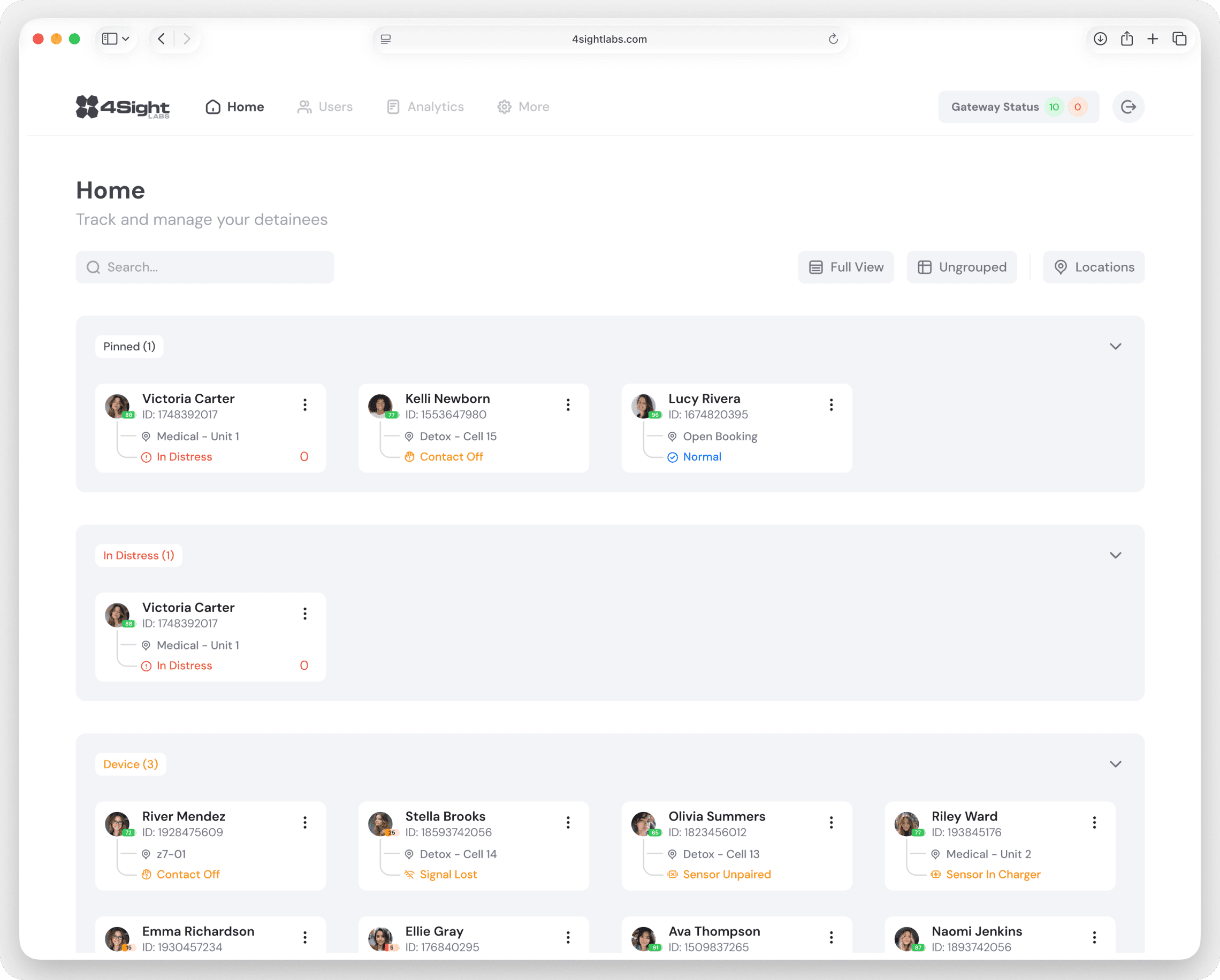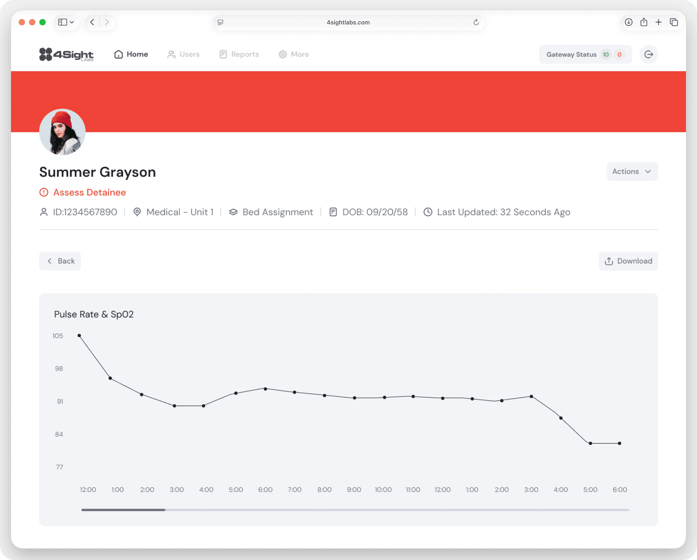 The 4Sight Labs OverWatch product features a wrist and ankle strap with 14 day battery life, location tracking and health monitoring tracking heart rate, activity level, and more. As well as a robust web and IOS app with real-time updates, that alerts staff to an inmates health at all times, allowing quick and effective response to emergencies.